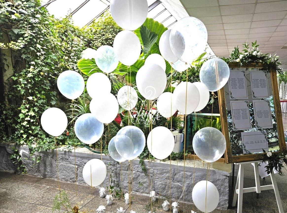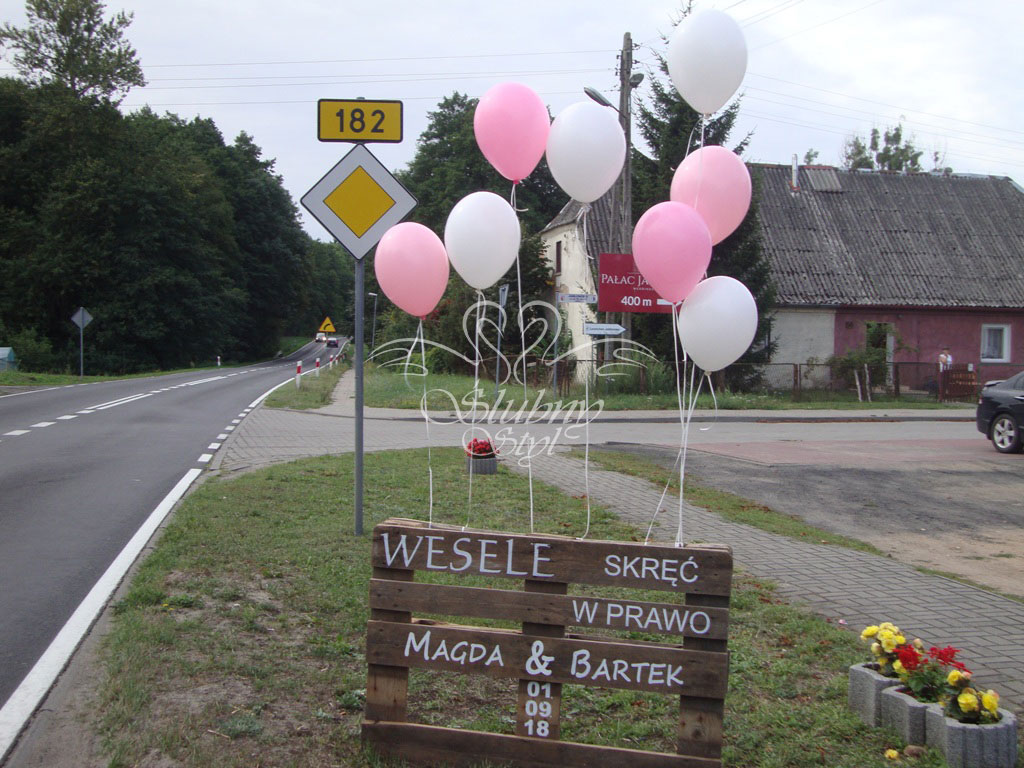 Na wejściu dekoracja, balony z helem