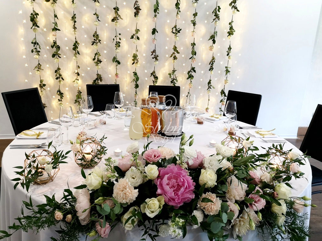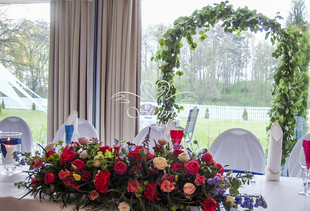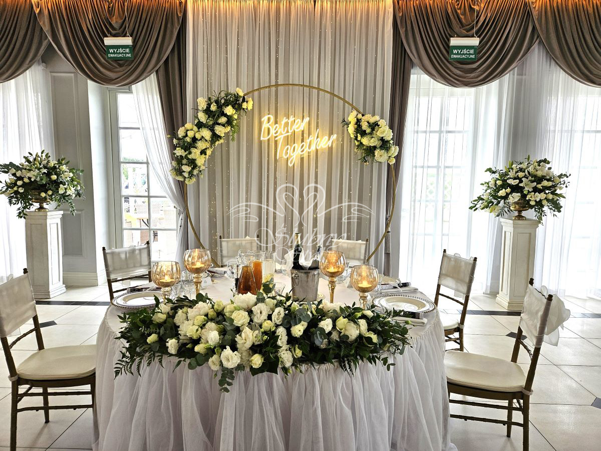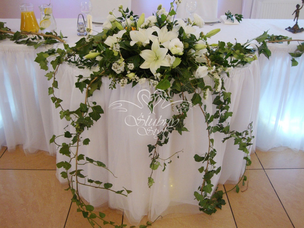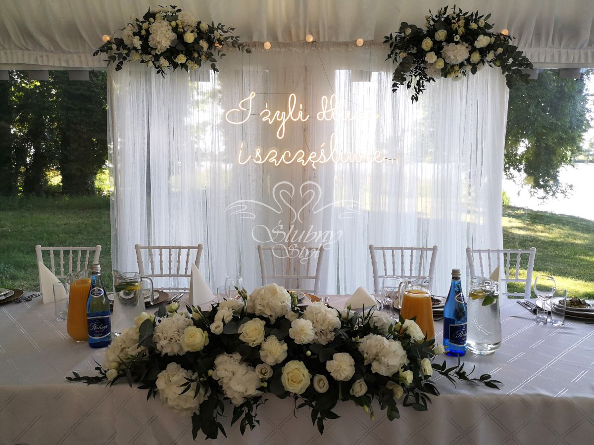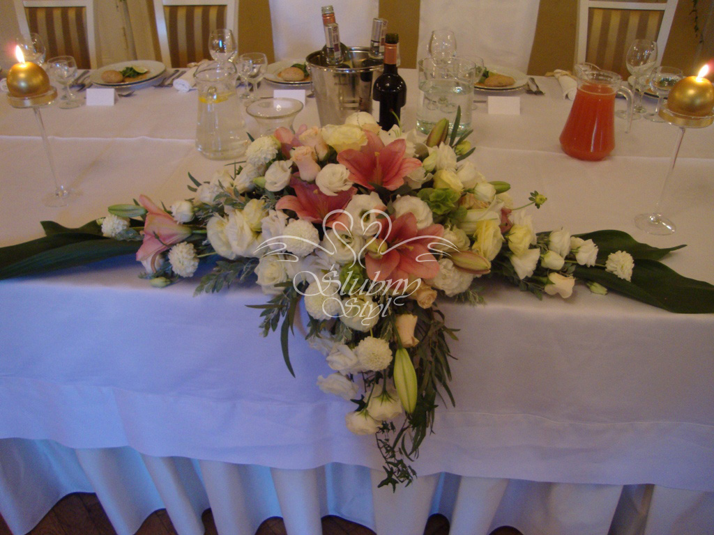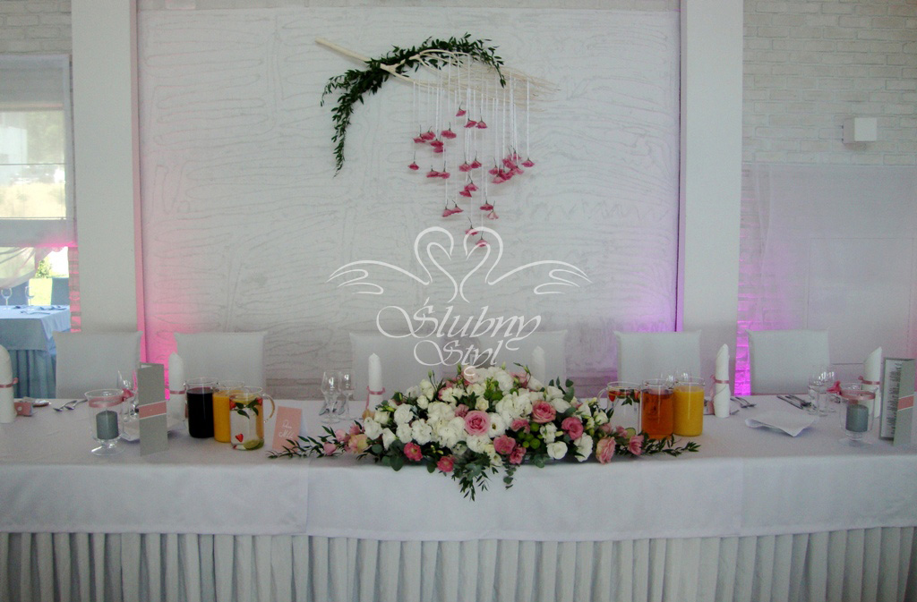 Dekoracja stołu prezydialnego Młodej Pary - Zajazd w Białej