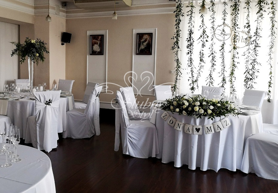 Hotelarnia - białe dekoracje na wesele