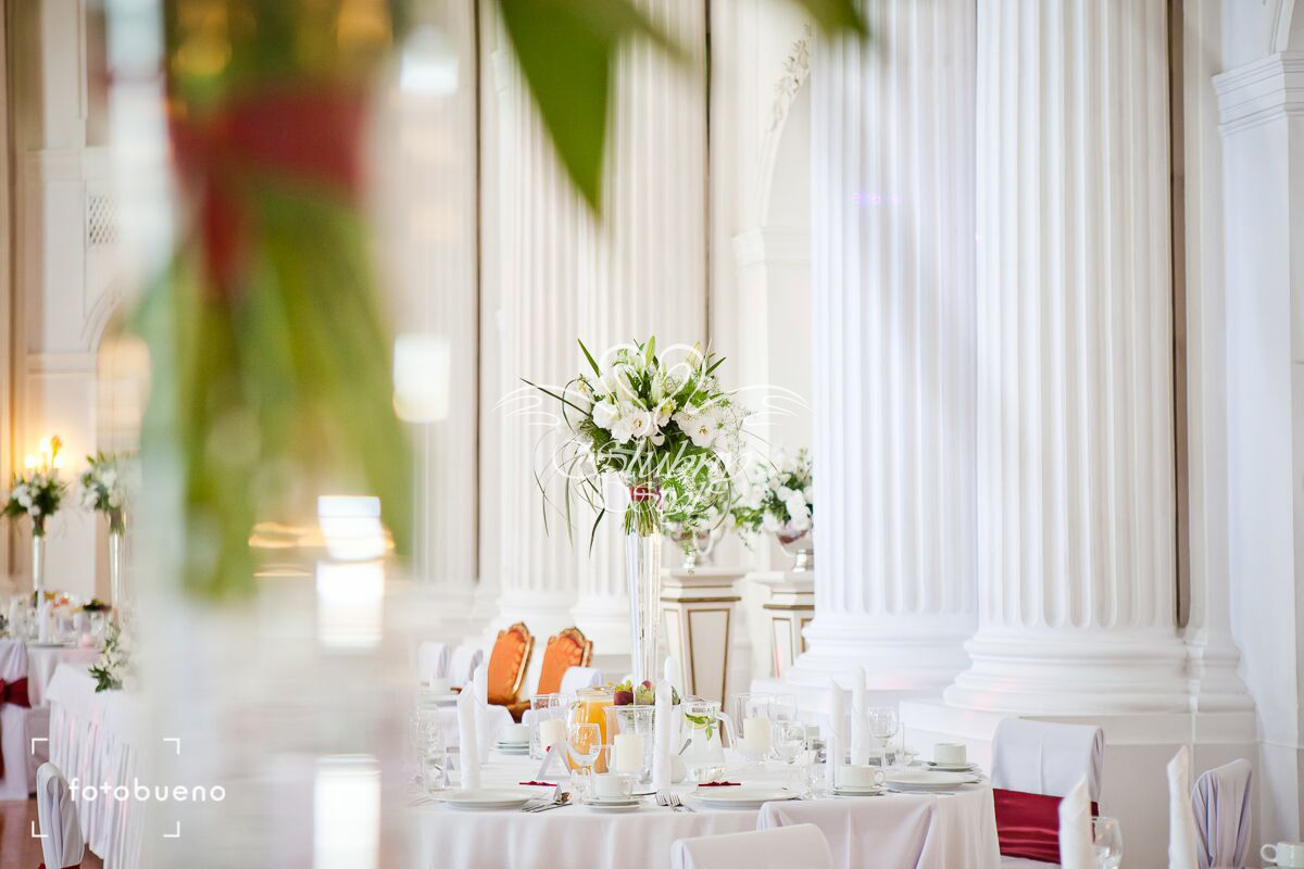 Wysokie kompozycje w wystroju sali weselnej Amaryllis