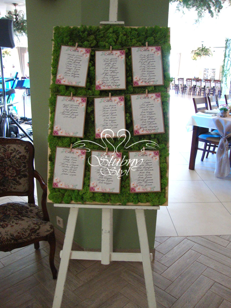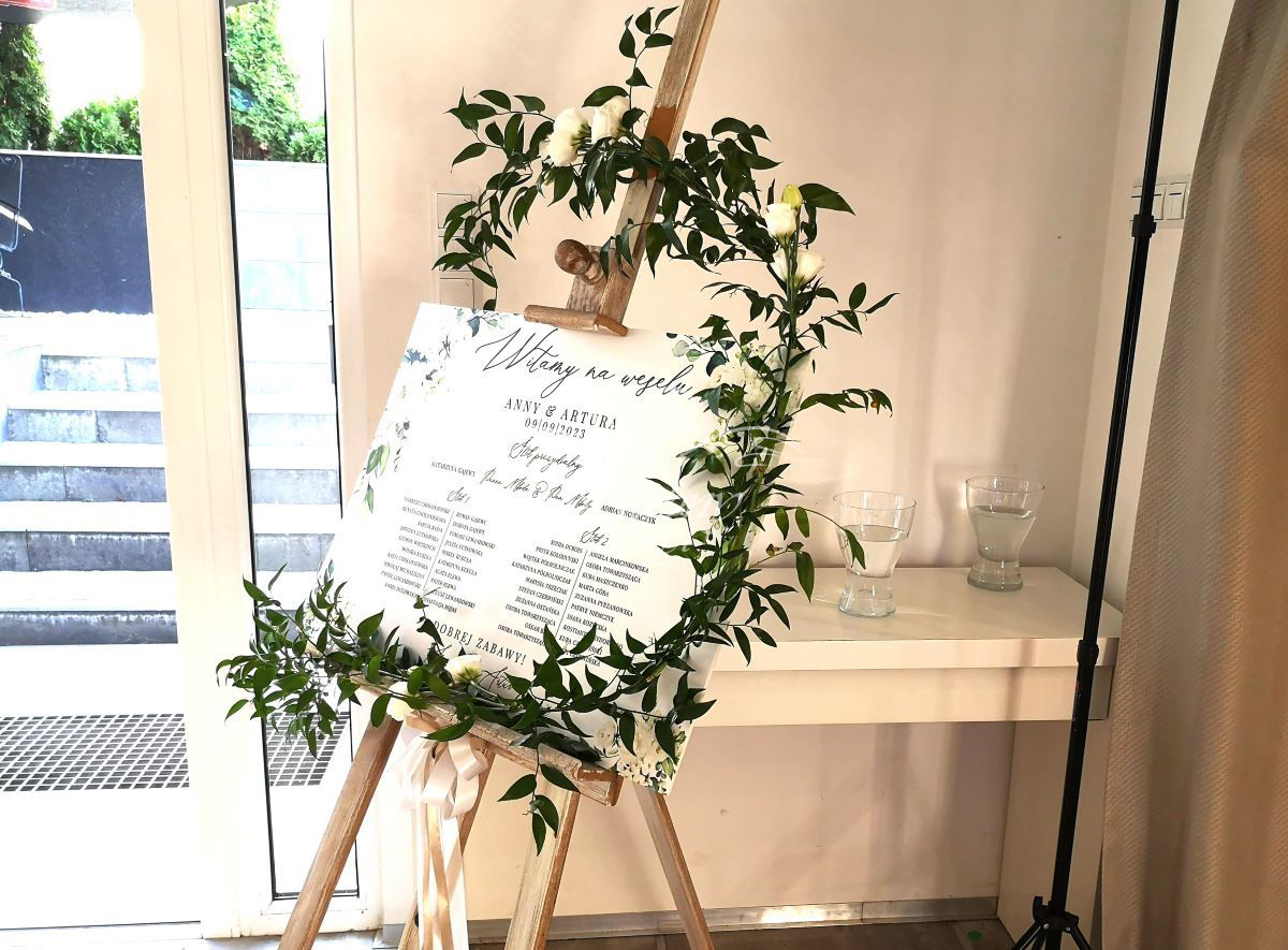 Dekoracja tablicy z rozmieszczeniem gości w Hotelu Kosmowski