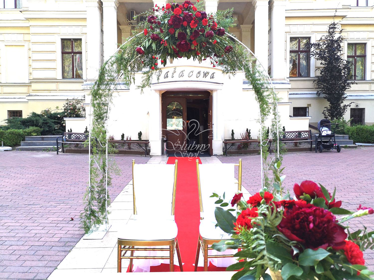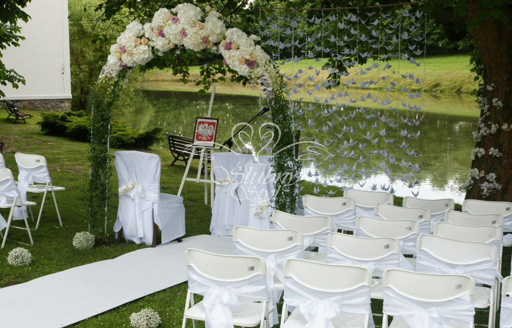 Dekoracja ślubnego łuku - ślub na powietrzu - Pałac w Biedrusku