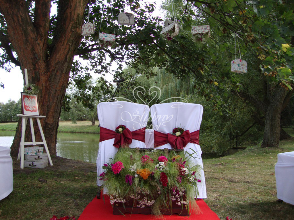 Ślub poza urzędem stanu cywilnego - przepiękna aranżacja dekoracji ślubnych w plenerze