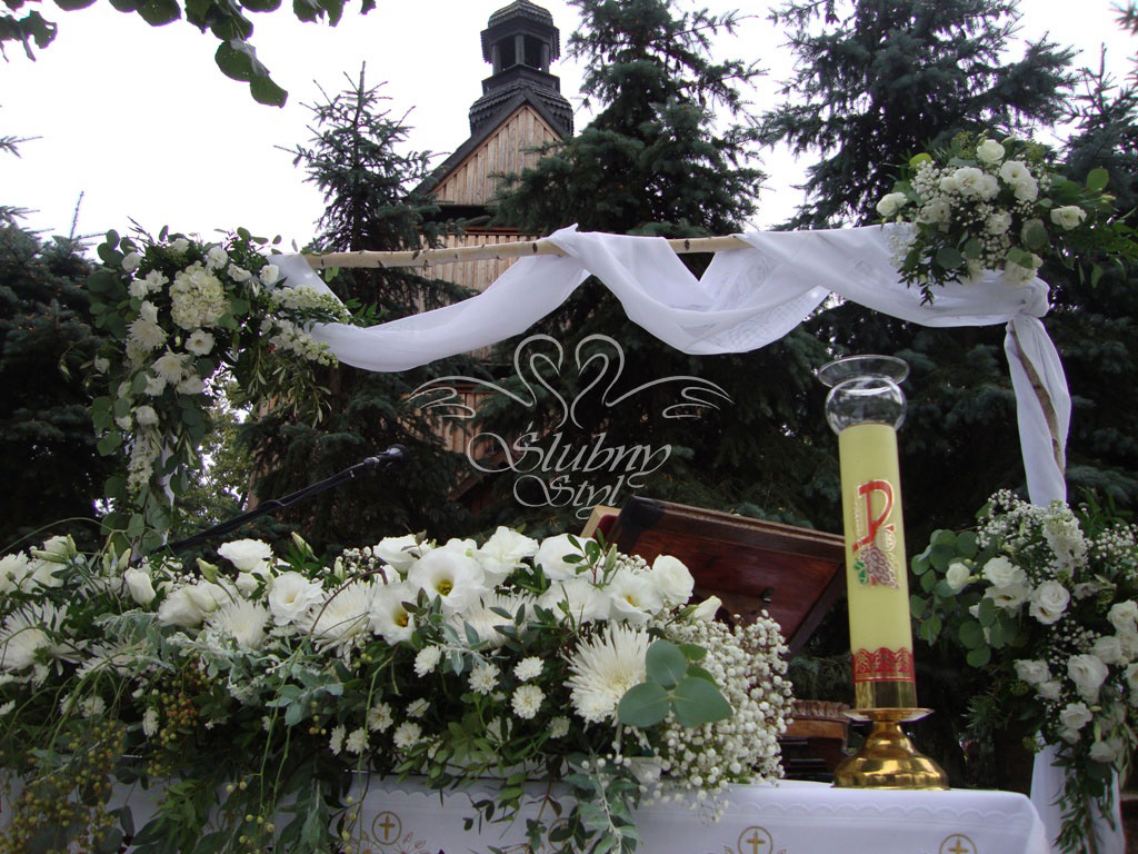 Dekoracja ślubnego łuku - Gościniec Sucholeski