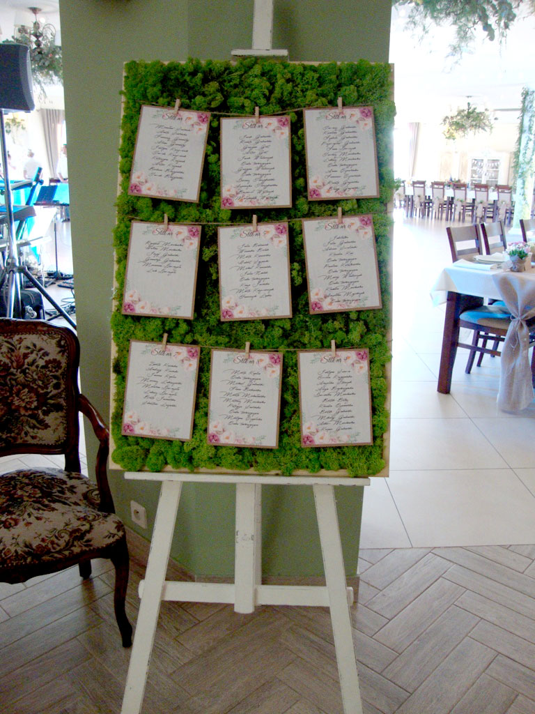 Drewniana rama do stworzenia tablicy z rozmieszczeniem gości pomoże w odnalezieniu odpowiedniego miejsca na przyjęciu. W ofercie posiadamy dwie ramy: