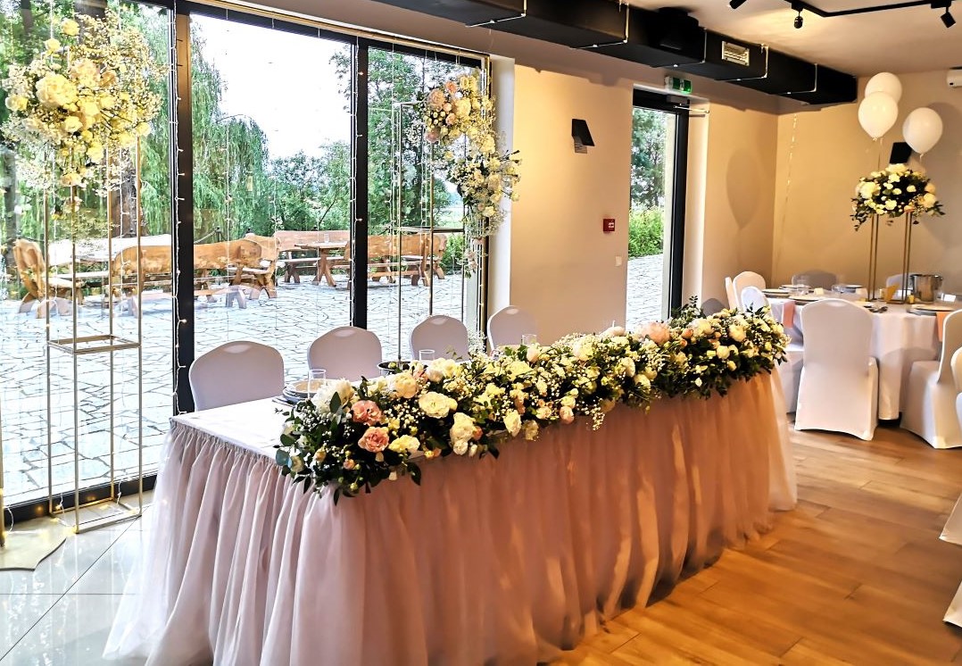 Skirting tiulowy (spódnica) 4,5 m długości, doskonale sprawdzi się w wystroju stołu Młodej Pary lub słodkiego stołu.